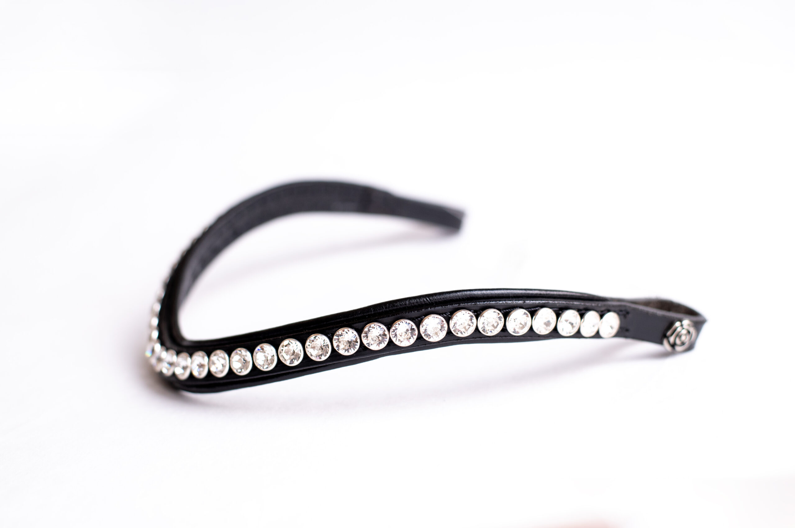 The browband of UNIQ Bridles is shaped in such a way that they do not put pressure on the chewing muscles or the jaw joint of your horse. We offer wide assortment of browbands embellished with Swarovski® crystals in different colors. The handmade browband has a 16mm with and the XL crystals have a size of 9mm.